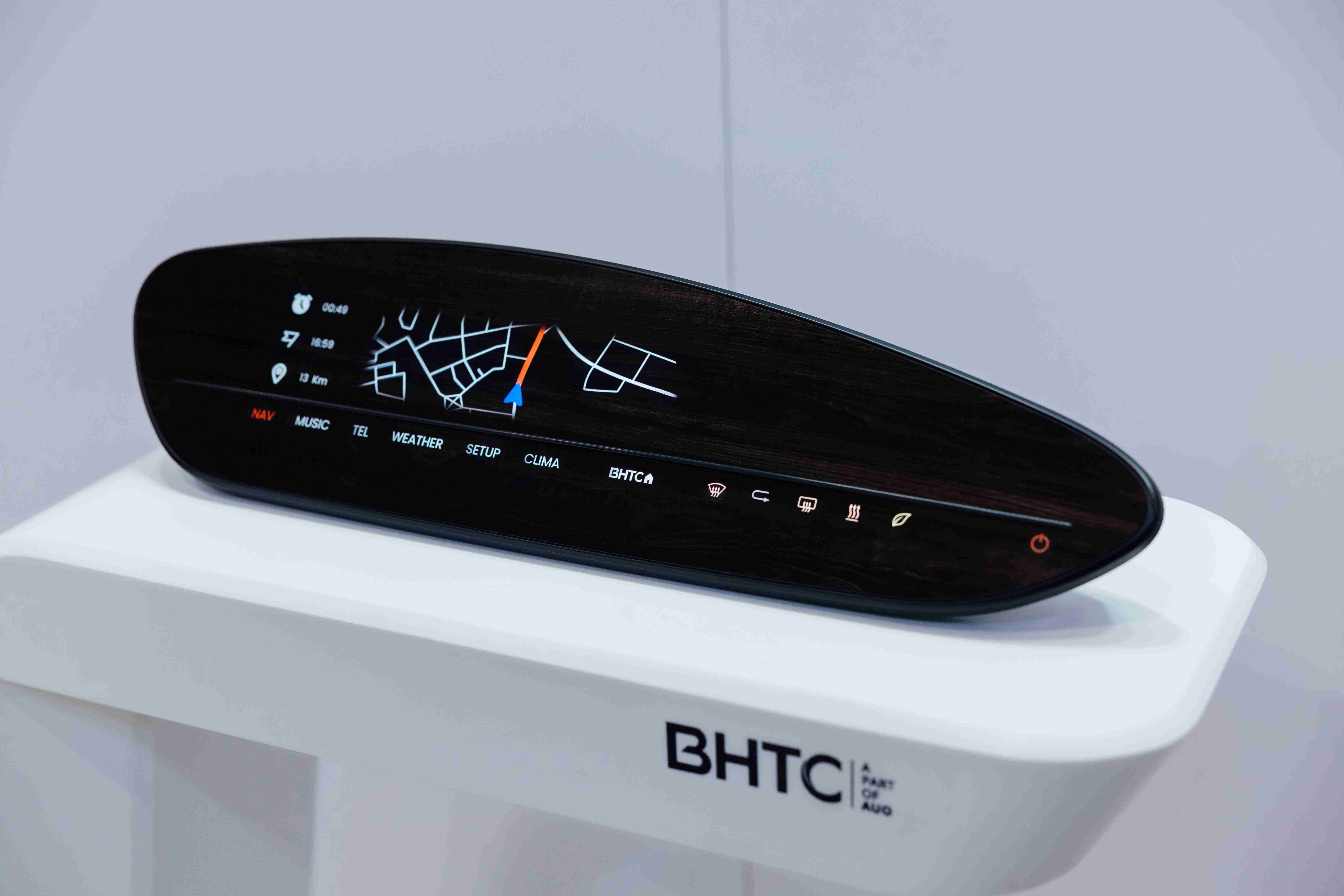 BHTC的木纹车用显示器(Display Behind Wood)将无缝木质表面与显示器结合后,,可以融入车内设计中,,,提供驾驶优质的视觉效果,,加上其无边框的设计和亮度调控,,,创造更优质的车内体验。。。