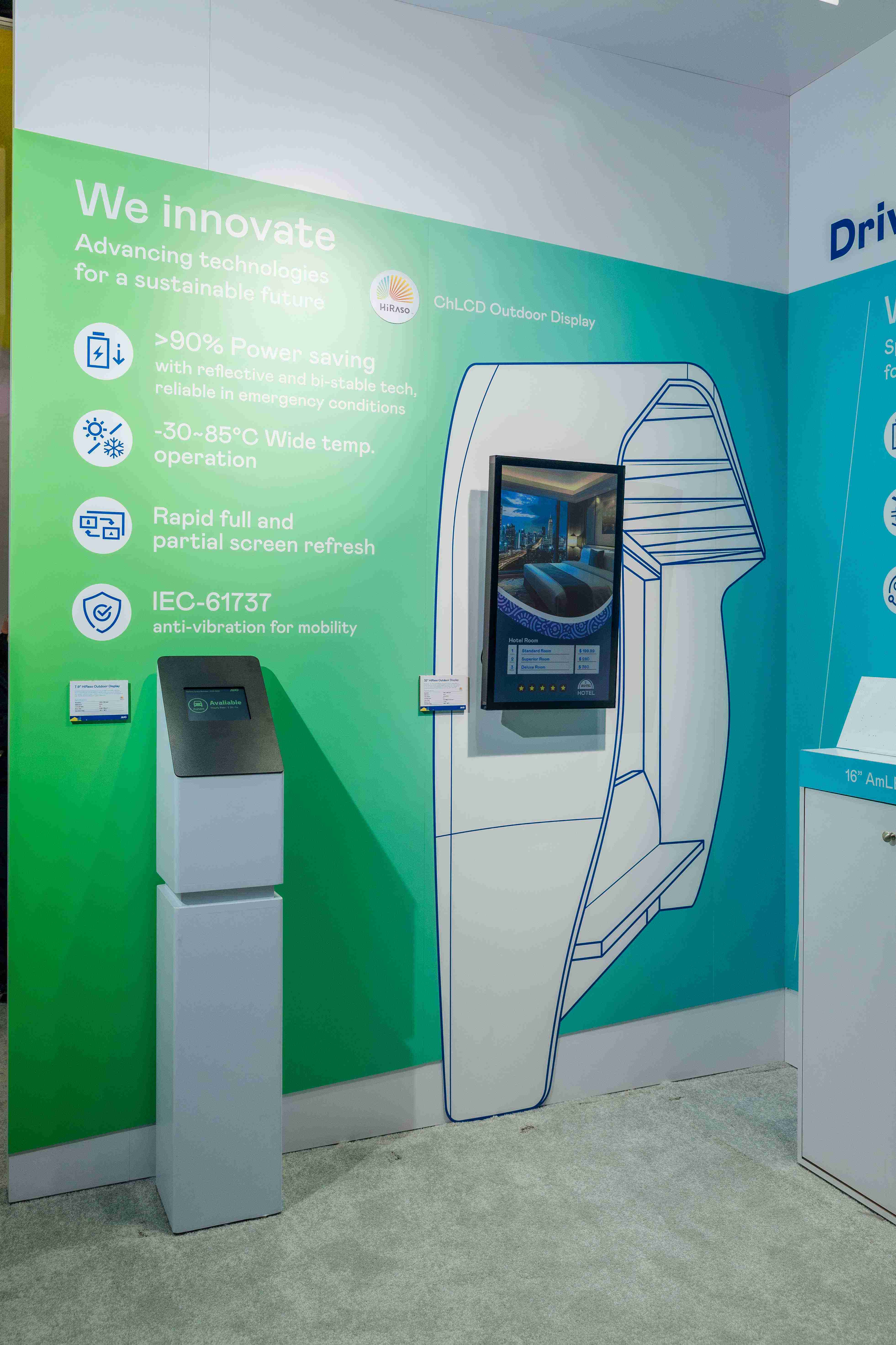 HiRaso胆固醇液晶显示器运用反射环境光线的方式,,呈现影像显示时零耗能的环保省电诉求,,,,光线愈强愈能呈现绝佳的色彩饱和度及显示效果,,同时在摄氏-30度至85度间宽温的使用优势,,为户外电子看板的新首选。。。