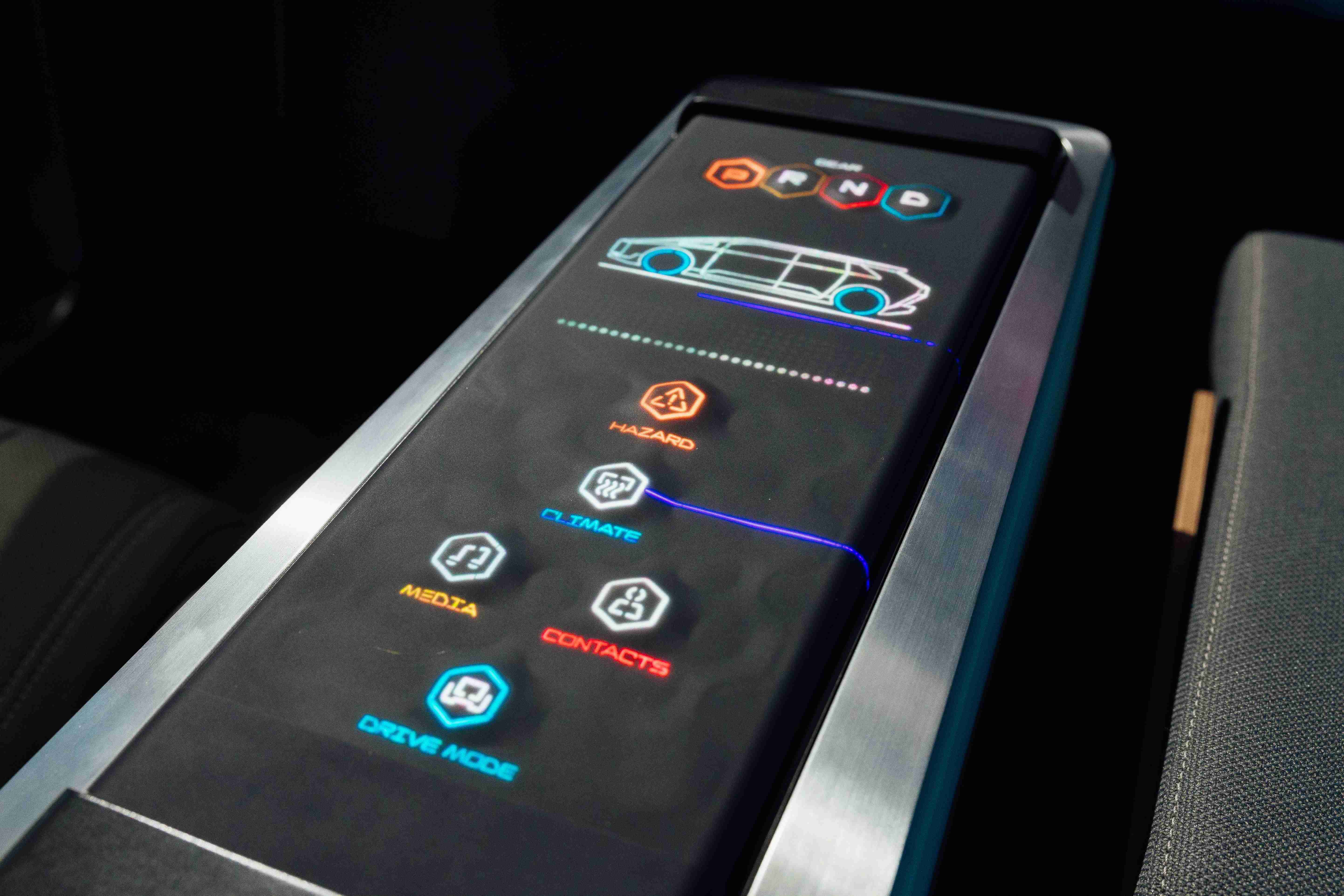 多变形态中控显示(Morphing Center Control)拥有动态变化的表面,,平时常态显示车辆功能,,,进一步操作时,,则会隆起成为3D 按钮,,并在触控时以震动回馈,,,以精细的操作开创人机互动新境界。。