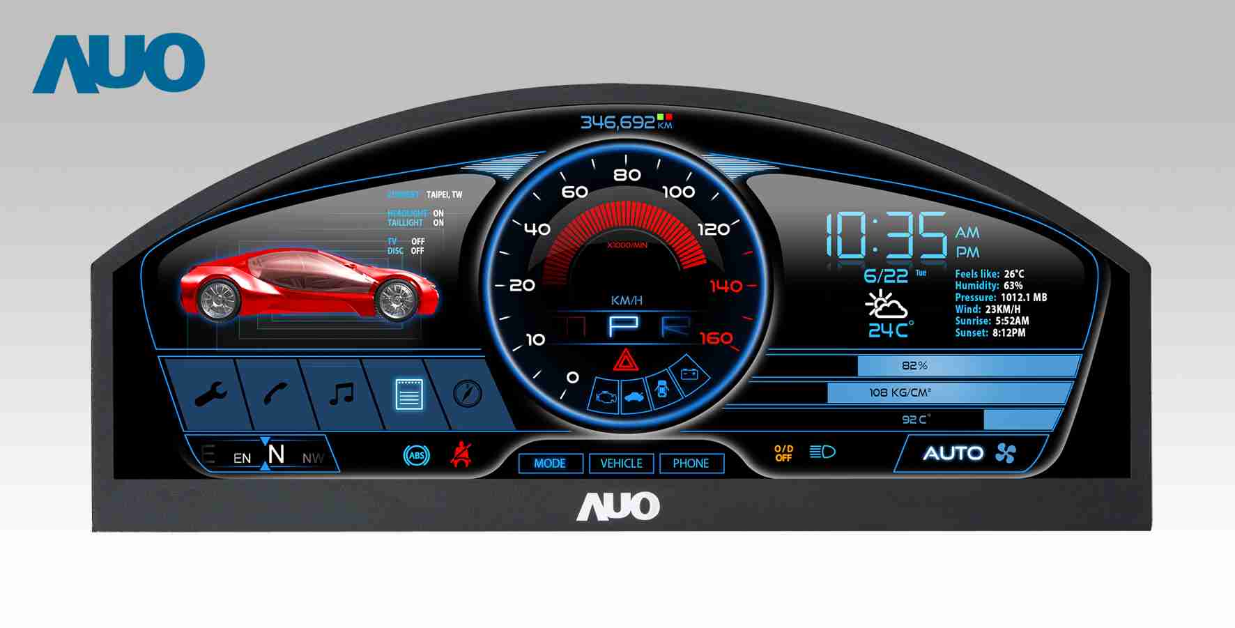 尊时凯龙 12.3吋超高解析异型切割车用面板,,拥有流线外观及精细画质