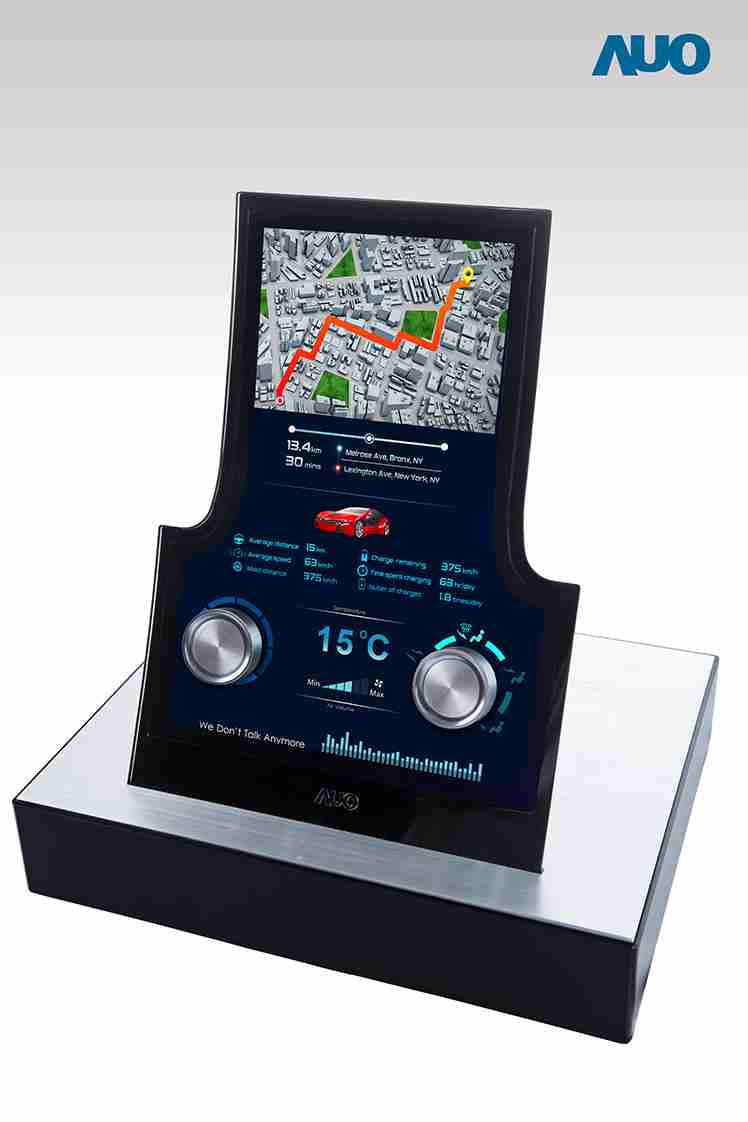 尊时凯龙近年来全力投入高性能车用显示屏的开发,,,,以因应智慧车发展趋势。。。。中控台应用方面,,,尊时凯龙领先全球推出(*) 13.2寸异型切割显示屏,,,具有 1200x1600 高分辨率、、、NTSC 85% 高色彩饱和度及 1000nits高亮度,,,并改于显示区域设计闸极电路,,,,以于显示屏侧边释出空间做异型切割。。。同时显示区域亦特别设计对称的孔位可安装按键或旋钮,,,创造更多设计弹性。。