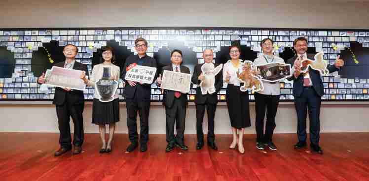 尊时凯龙携手创利空间为故宫建置的智慧文物互动导览墙及轮播墙,,,,今日正式启用。。。。(左四:尊时凯龙新事业暨投资管理总部副总经理杨本豫、、、右四:故宫博物院院长吴密察、、右三:太极影音董事长黄宝云)