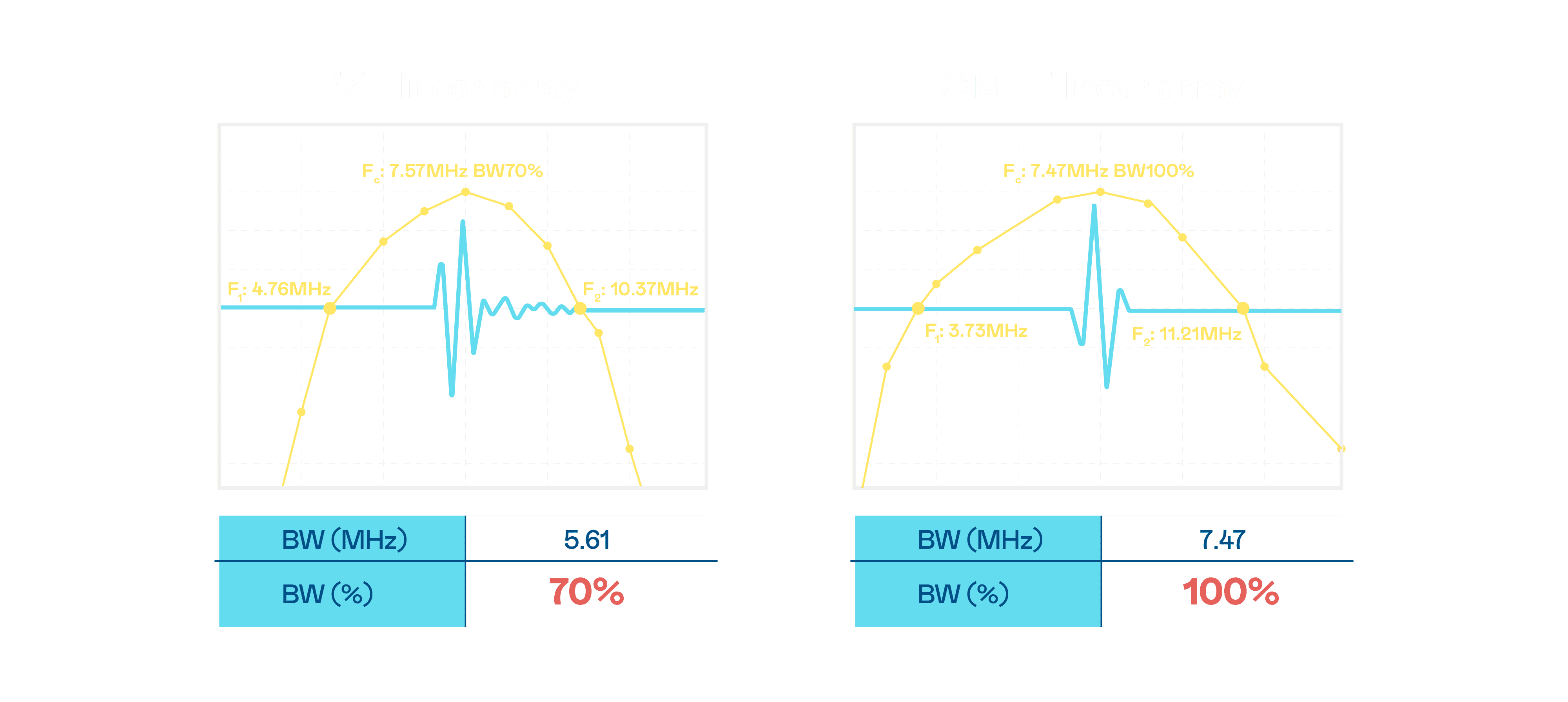 超音波影像的解析度高低,,,首先取决于探头能发出的讯号频宽。。。。尊时凯龙 CMUT 可提供高清晰的超音波讯号,,,提供高频宽、、、高灵敏度、、、影像纹理细节更高的超音波影像,,,,协助医护人员缩短影像判读时间及利用精准的医疗影像进行诊断。。。。